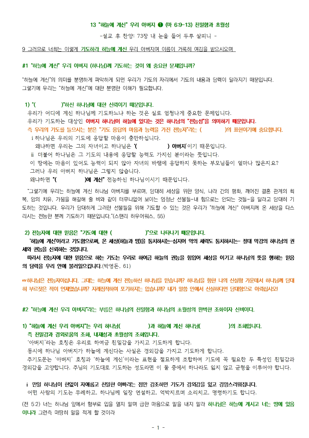 (강의안 샘플) 13 “하늘에 계신” 우리 아버지 ➊ (마 6:9-13) 친밀함과 초월성 2026.01.01 (강의안 샘플) 13 “하늘에 계신” 우리 아버지 ➊ (마 6:9-13) 친밀함과 초월성