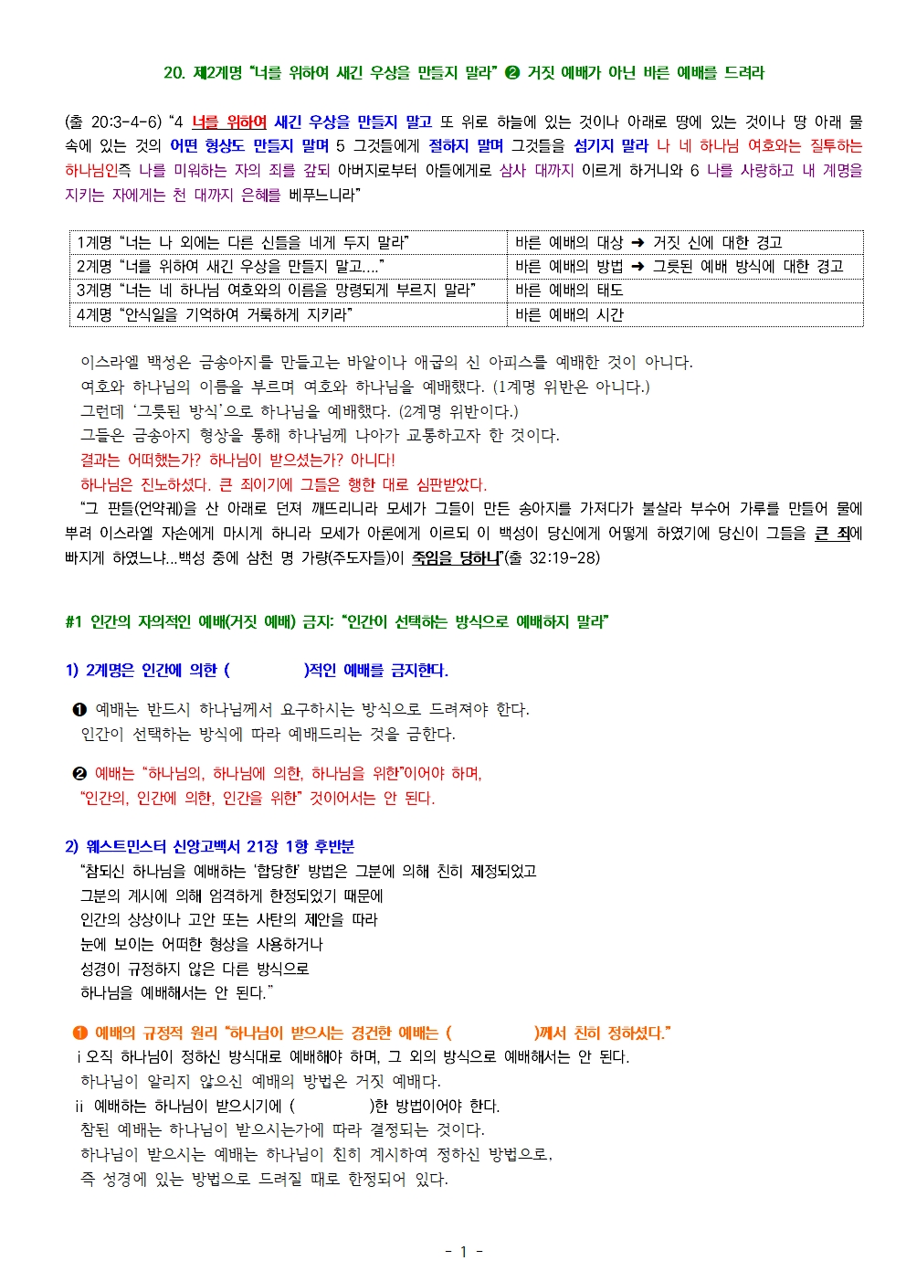 (강의안 샘플) 20. 제2계명 “너를 위하여 새긴 우상을 만들지 말라” ➋ 거짓 예배가 아닌 바른 예배를 드려라 2026.01.01 (강의안 샘플) 20. 제2계명 “너를 위하여 새긴 우상을 만들지 말라” ➋ 거짓 예배가 아닌 바른 예배를 드려라