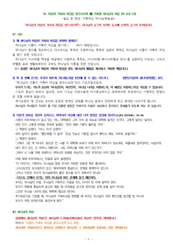 "이름이 거룩히 여김을 받으시오며"⓵