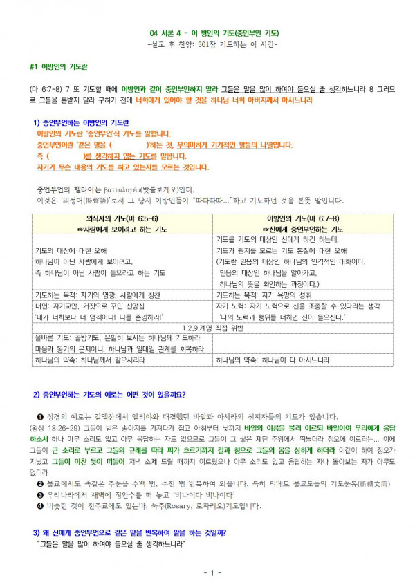 주기도문 4 -서론 4 이방인의 기도 1 2022.03.13 https://youtu.be/XOqv2abVnwM + 5160 본문: 마태복음 6:7-8 제목: "이방인의 기도" (주기도문 강해 서론 4) 설교자: 최기열 목사