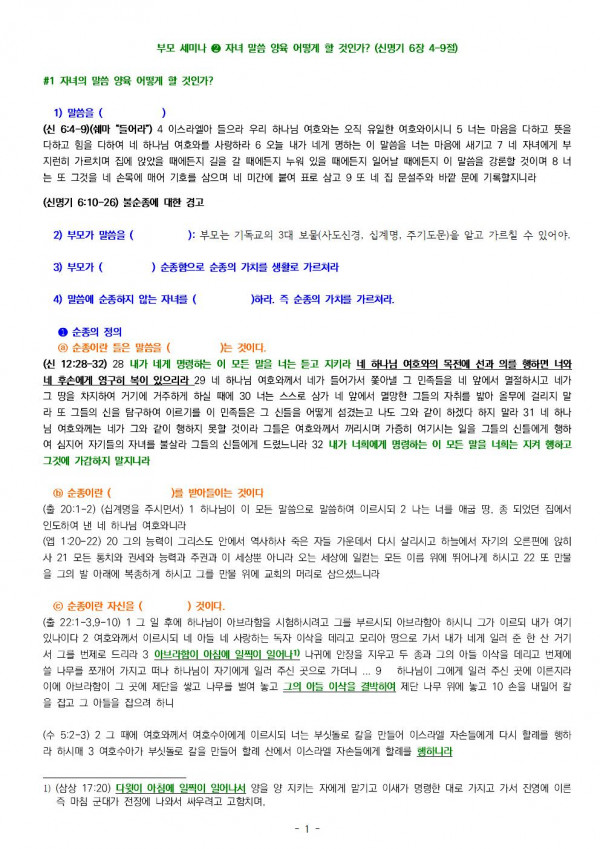 부모 세미나 2 말씀 양육 어떻게 할 것인가? 2022.06.05 https://youtu.be/seHoPBFMTjs + 4659 본 문 : 신명기 6장4-9절 제 목 : "말씀 양육 어떻게 할 것인가?" 설교자 : 최기열 목사