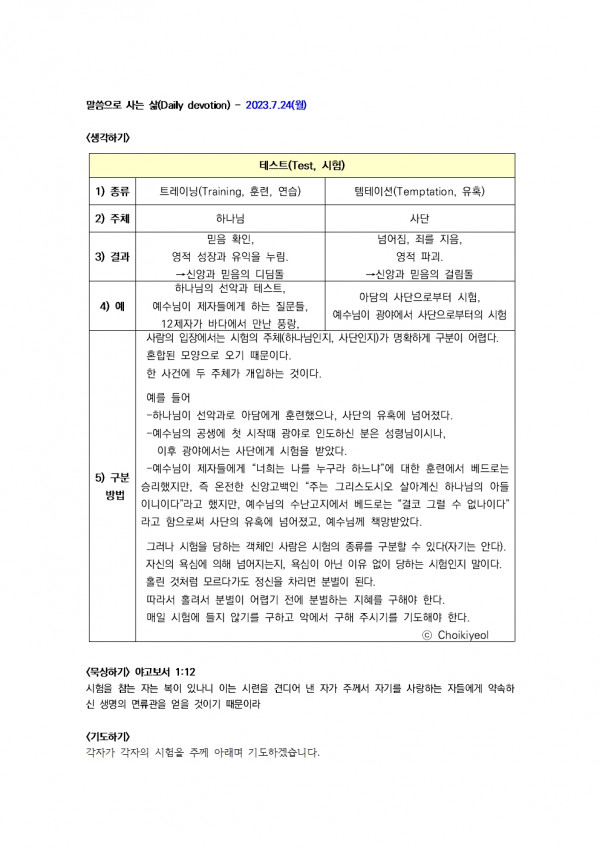 말씀으로 사는 삶(Daily devotion) - 2023.7.24(월)