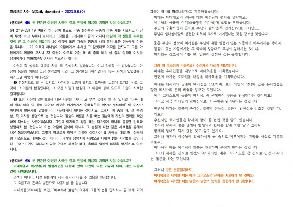 말씀으로 사는 삶(Daily devotion) - 2023.9.6.(수)