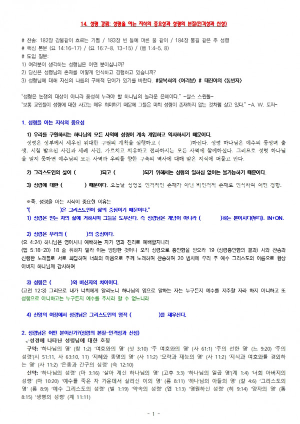 (샘플) 14. 성령 강림: 성령을 아는 지식의 중요성과 성령의 본질(인격성과 신성) 2026.01.01 (샘플) 14. 성령 강림: 성령을 아는 지식의 중요성과 성령의 본질(인격성과 신성)