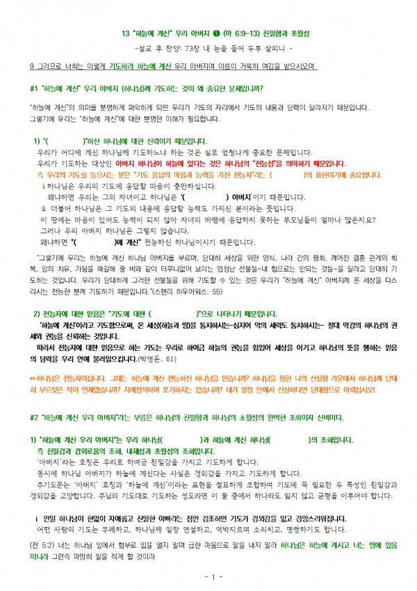 (강의안 샘플) 13 “하늘에 계신” 우리 아버지 ➊ (마 6:9-13) 친밀함과 초월성 2026.01.01 (강의안 샘플) 13 “하늘에 계신” 우리 아버지 ➊ (마 6:9-13) 친밀함과 초월성