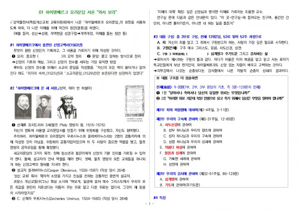 (강의안 샘플) 01 하이델베르크 요리문답 서론 “와서 보라”