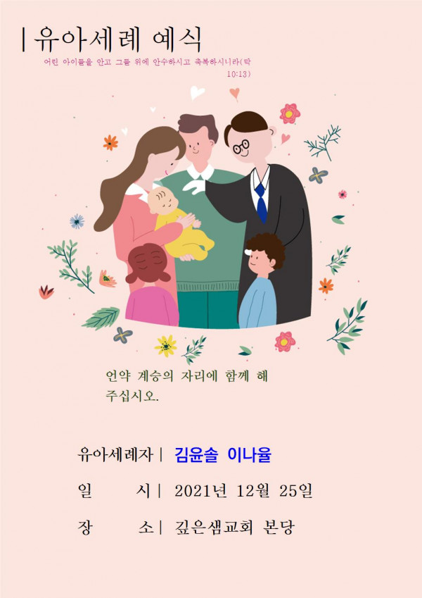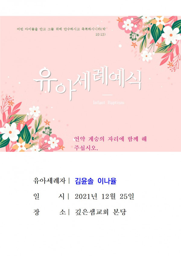 유아세례 예식(2021.12.25.) -김윤솔, 이나율
