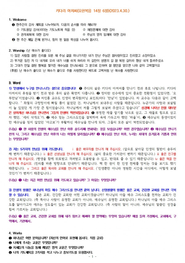 2023.4.30. 사랑의 초대 3 "키다리 아저씨" 구역모임 나눔지