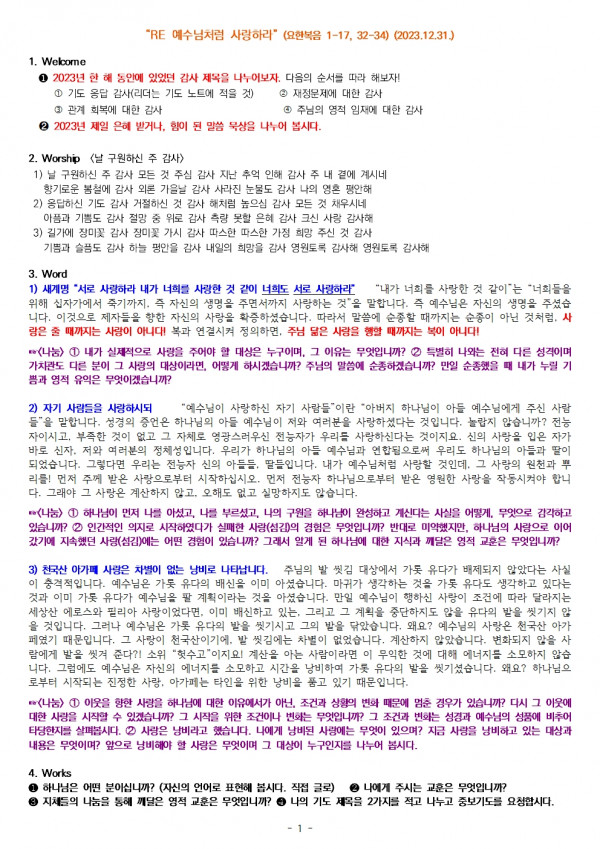 2023.12.31. 구역모임 나눔지