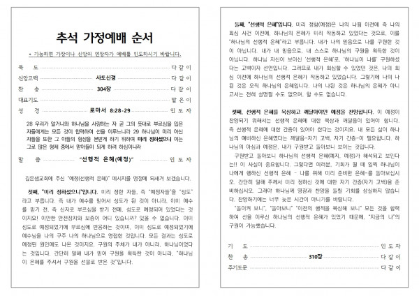 2024년 추석 가정 예배 순서지
