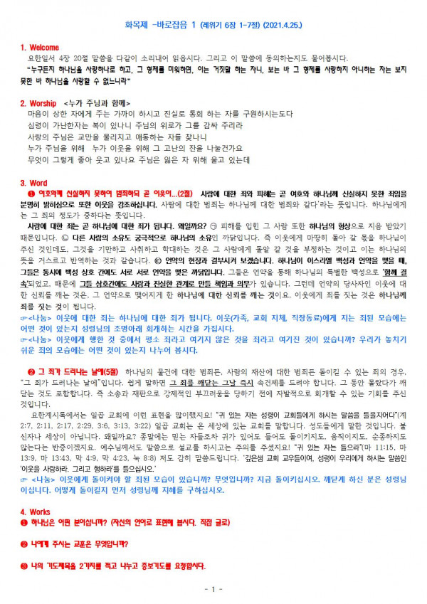 2021.4.25. 구역모임 나눔지