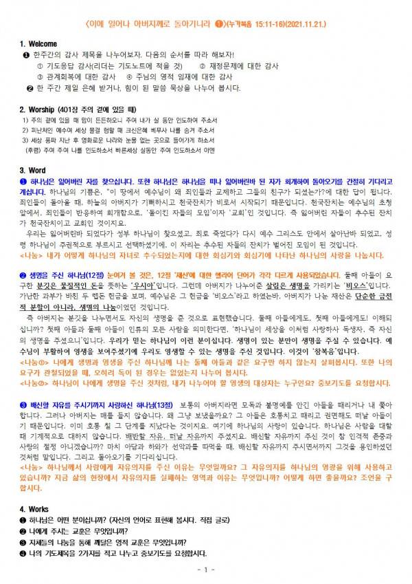 2021.11.21. 구역모임 나눔지