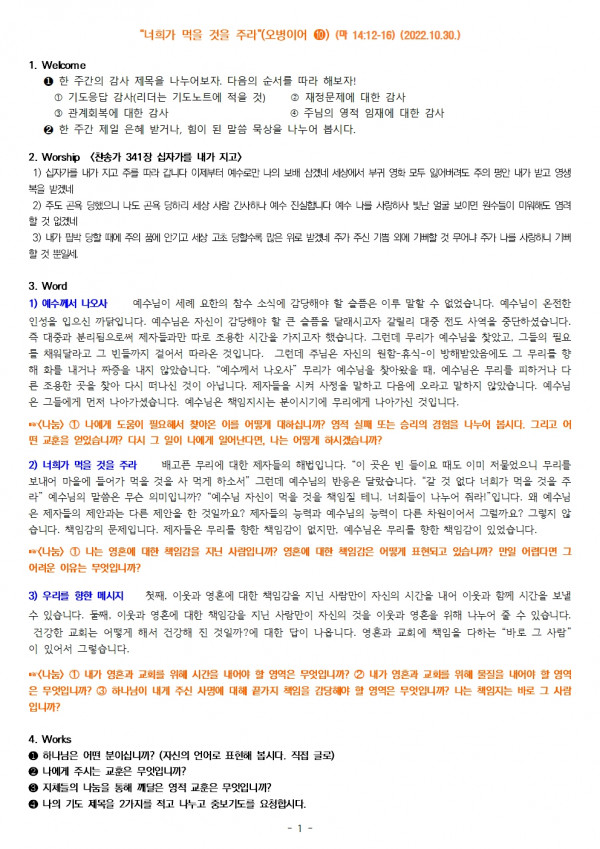 2022.11.6. 구역모임 나눔지